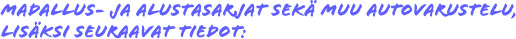 Seuraavat tiedot nopeuttavat ja helpottavat tarjouspyyntösi käsittelyä. Helpoimmin tiedot löytyvät auton rekisteriotteesta. Täytä näistä kentistä niin paljon kuin helposti pystyt - Kiitos :)
